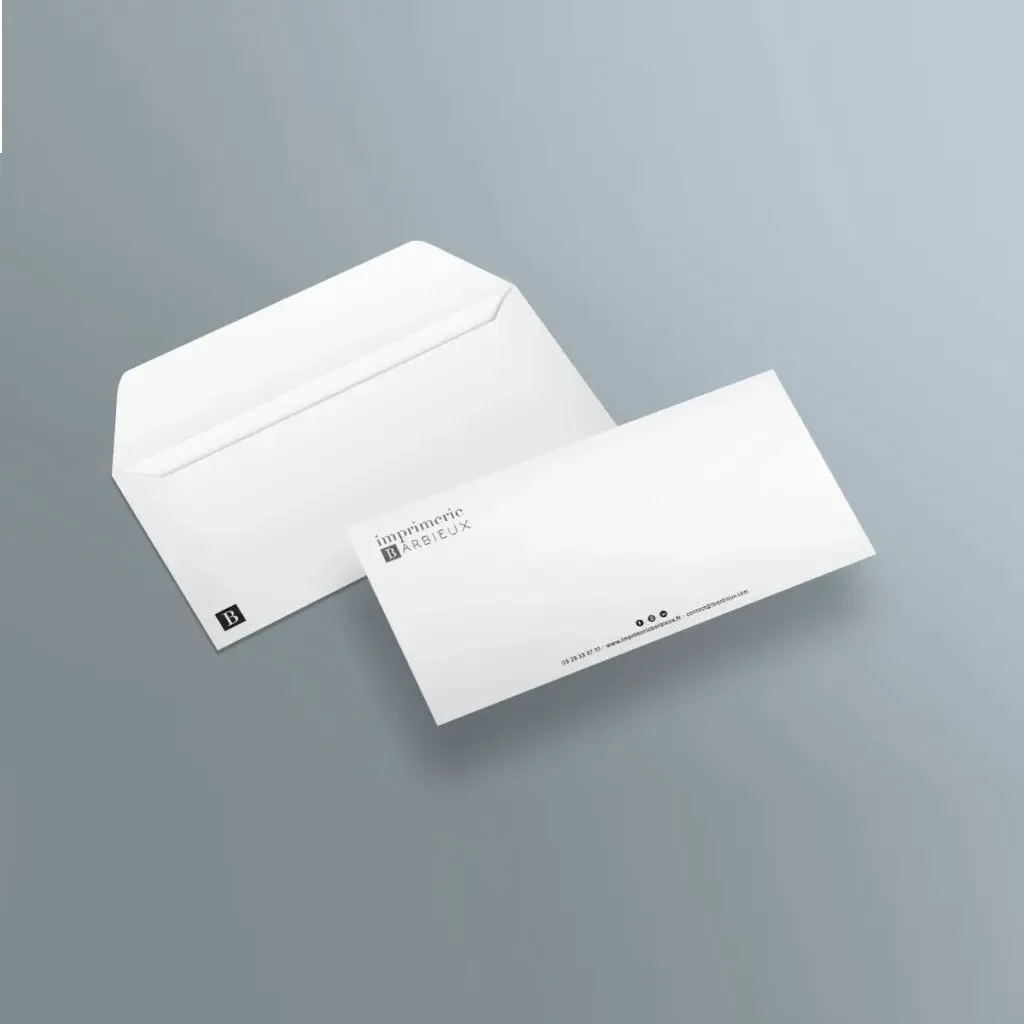 - Enveloppes personnalisées : avec votre logo et vos coordonnées.