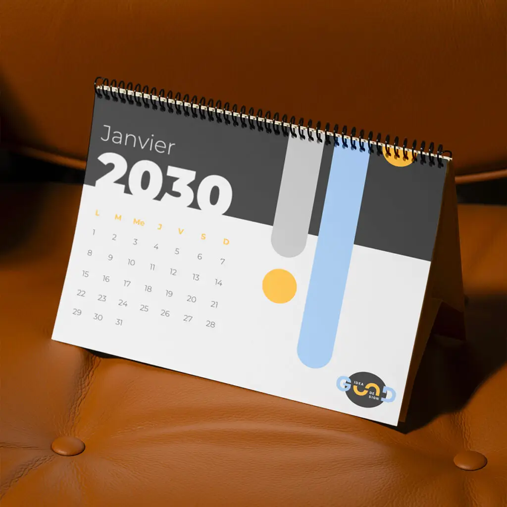 Nous concevons vos calendriers muraux, chevalets de bureau, planches ou cartes calendrier selon votre charte graphique et vos besoins.